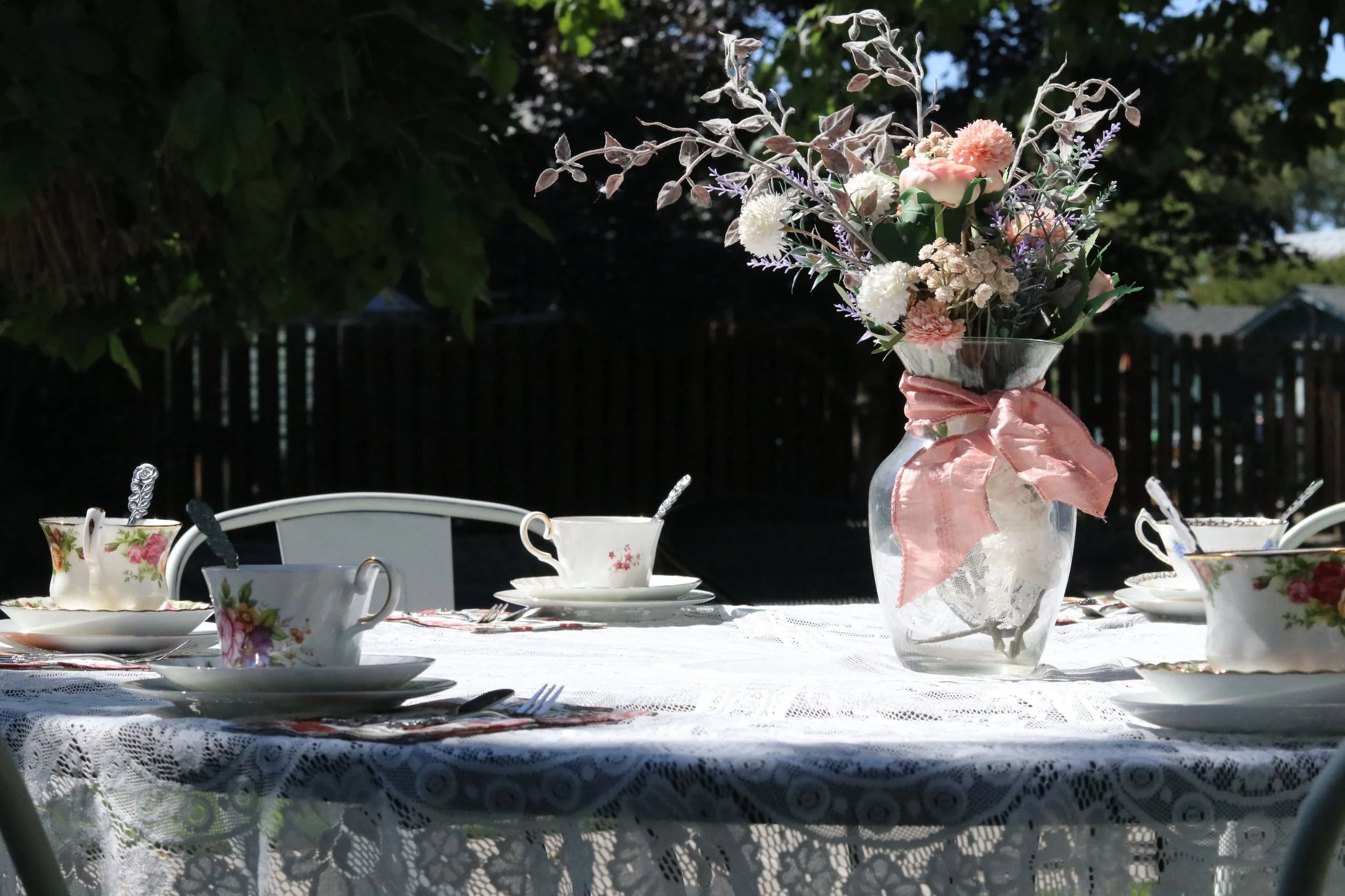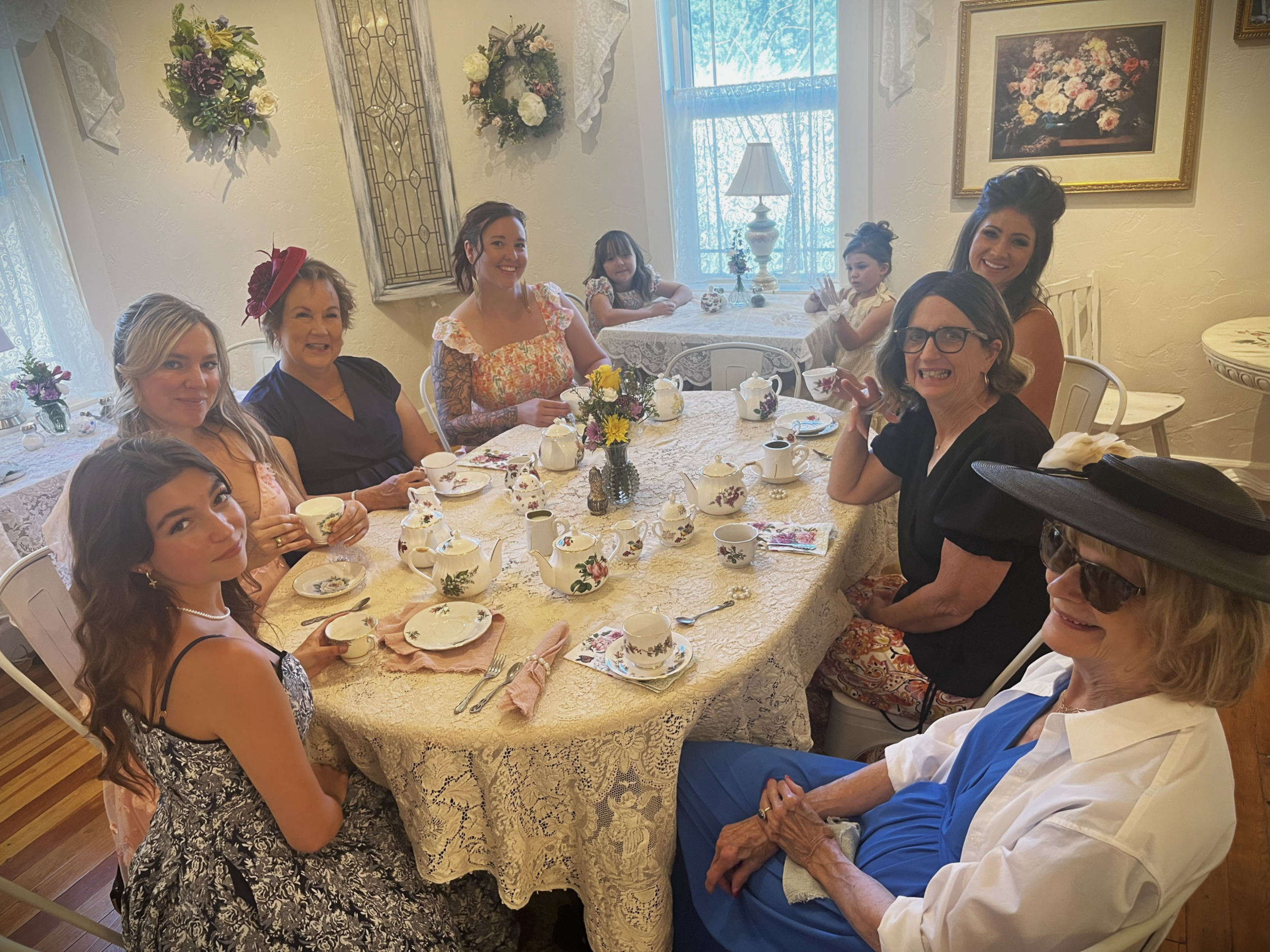 Two tea sandwiches, one scone w/preserves & Devonshire cream, two petite desserts & a pot of tea or hot cocoa.